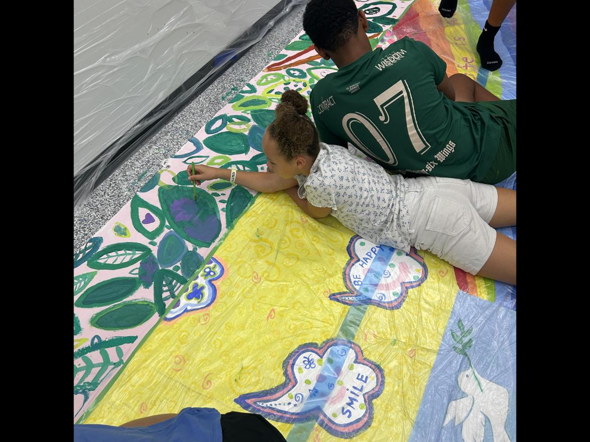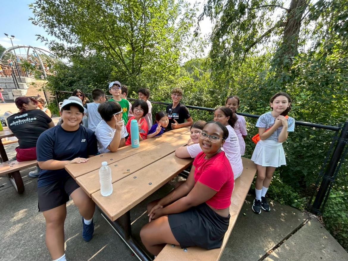 2017年のテニス交流には、小学生1人、中学生2人が参加しました。2週間のテニスキャンプ、ホームステイ、姉妹都市交流イベントに参加しました。夏の間は屋外コートですが、今年は仮設のエアドーム室内コートになっていました。
